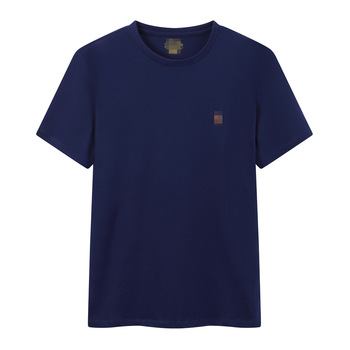 T-shirt d'été transfrontalier pour homme en pur coton coupe ample haut décontracté assorti avec étiquette brodée petit cheval motif solide